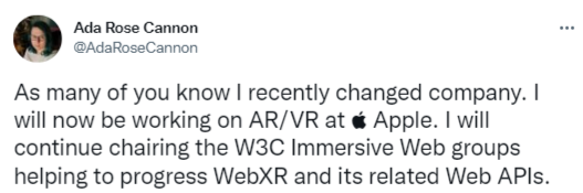 WebXR 开发人员 Cannon 将加入苹果公司