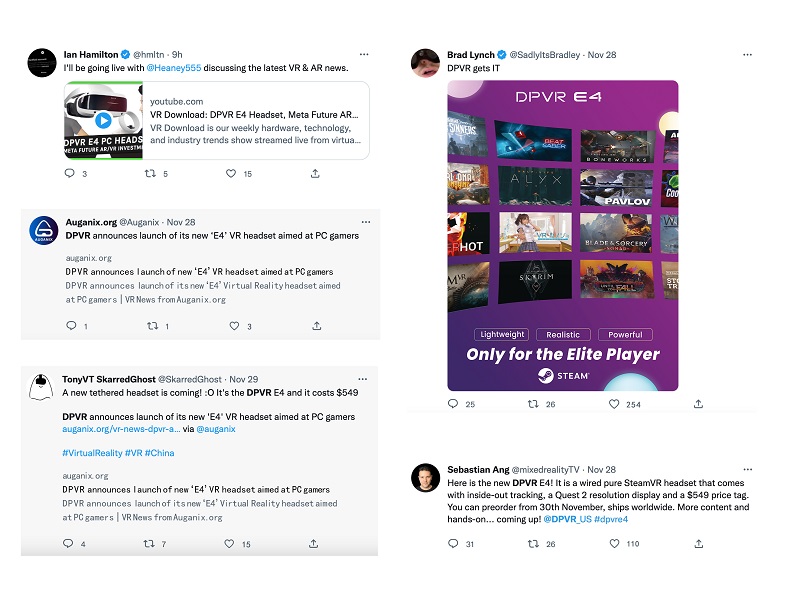 大朋VR E4正式发布的消息,也引起了诸多海外媒体与VR游戏玩家的关注,包括美国头部VR行业媒体UploadVR,后续UploadVR也会正式发布大朋VR E4的评测报道。