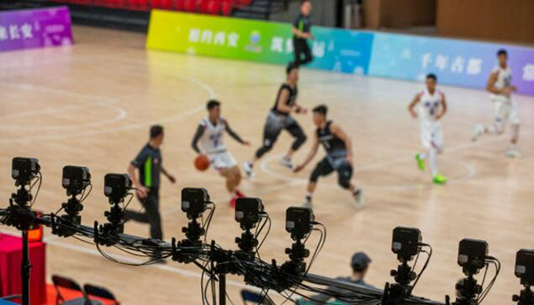 在篮球测试赛现场,中国电信陕西公司搭建了4路6目VR摄像机、72部像机,依托5G技术高带宽、低时延、高可靠性的优势,现场直播的传输速率达到了4G网络的十几倍,以毫秒级同步投射到屏幕上,传输速度和移动性有了更坚实的技术支撑。陕西公司智慧家庭运营中心总监郭波介绍说:“这些每一路都是4K高清,通过这些镜头,现场赛况的各路声画都被实时地上传至各大直播平台,大大满足了观众同步观看比赛的需求。不仅可以自由转换观赛视角,还可以从视角上拉近观众与比赛现场的距离,获得沉浸式观赛体验。”